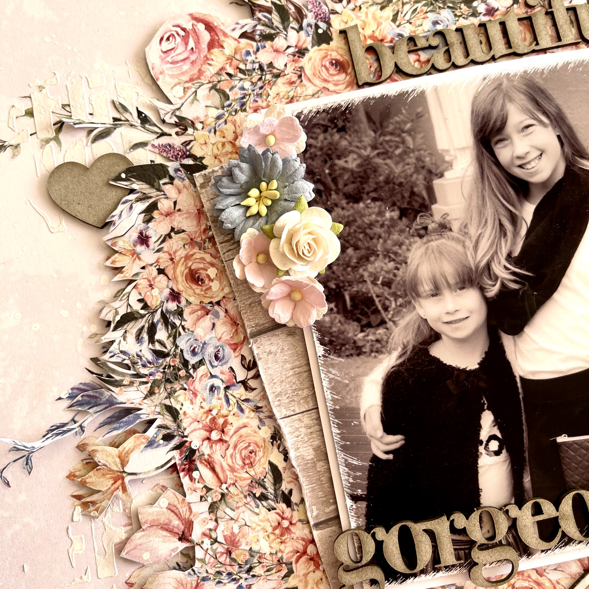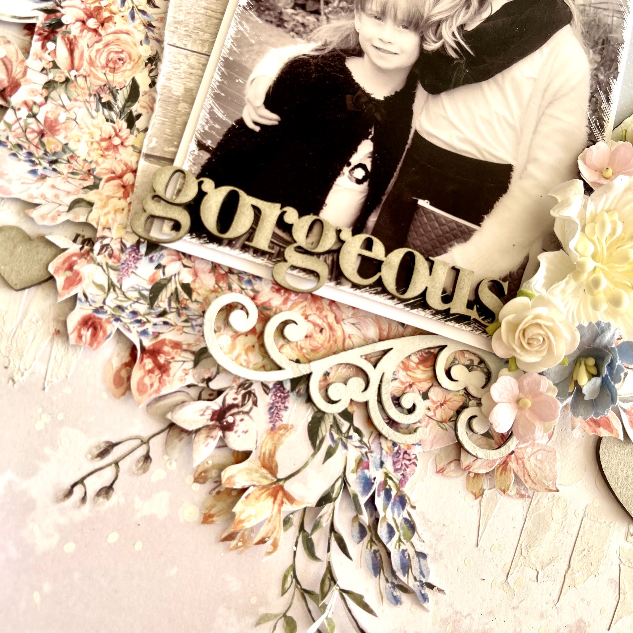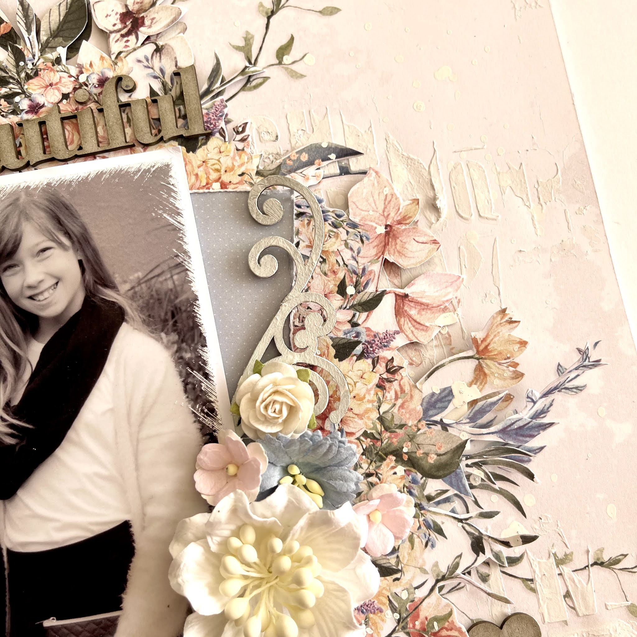 Paper Rose Flourishes 1, Big Gorgeous Beautiful & Block Girl Titles Chipboard