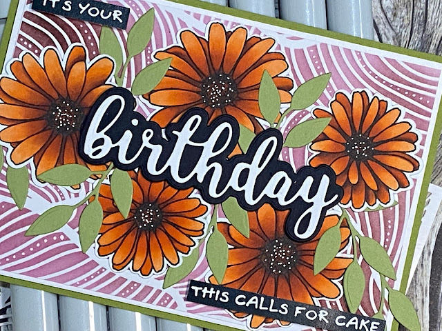 The daisies have been stamped onto blending card using Memento ink in Tuxedo black