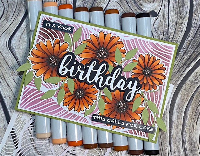 The background has been created using the wonky waves stencil and Pink ink blended with a Coffee coloured brown ink.