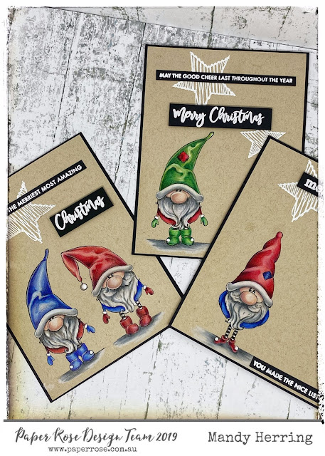 I have a set of cards for you featuring the new Gnomies stamp set from Paper Rose studio.