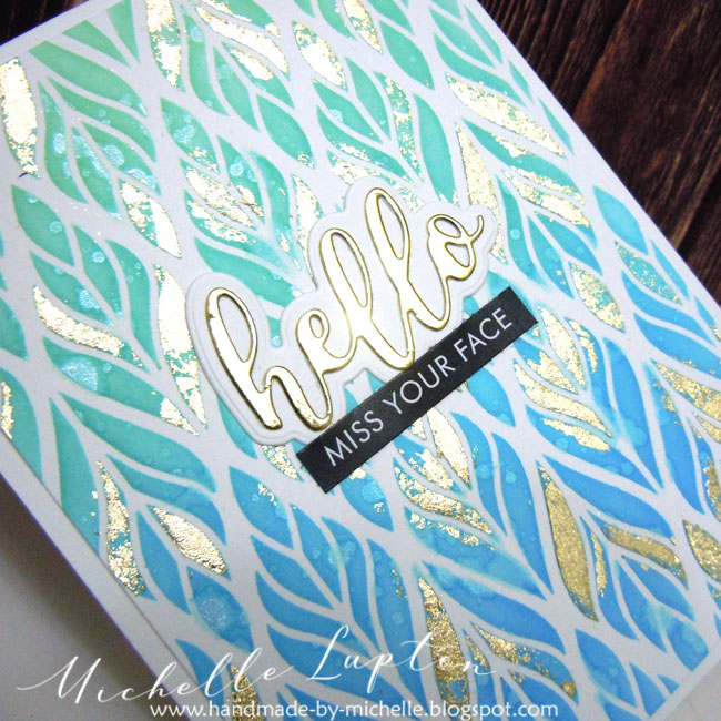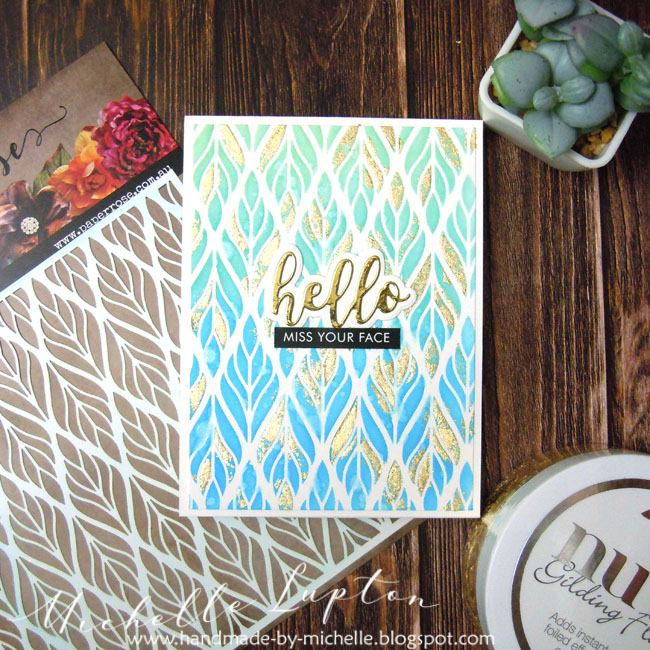 I made a card for Paper Rose Studio using a stencil and gilding flakes!