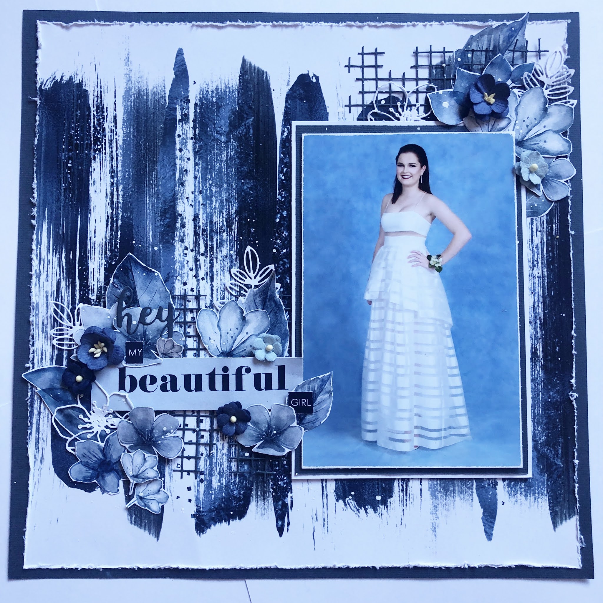 The 18237 Hey Layered die and the 19023 Black & White Sentiment sheet together with beautiful fussy cut from one of the papers finishes