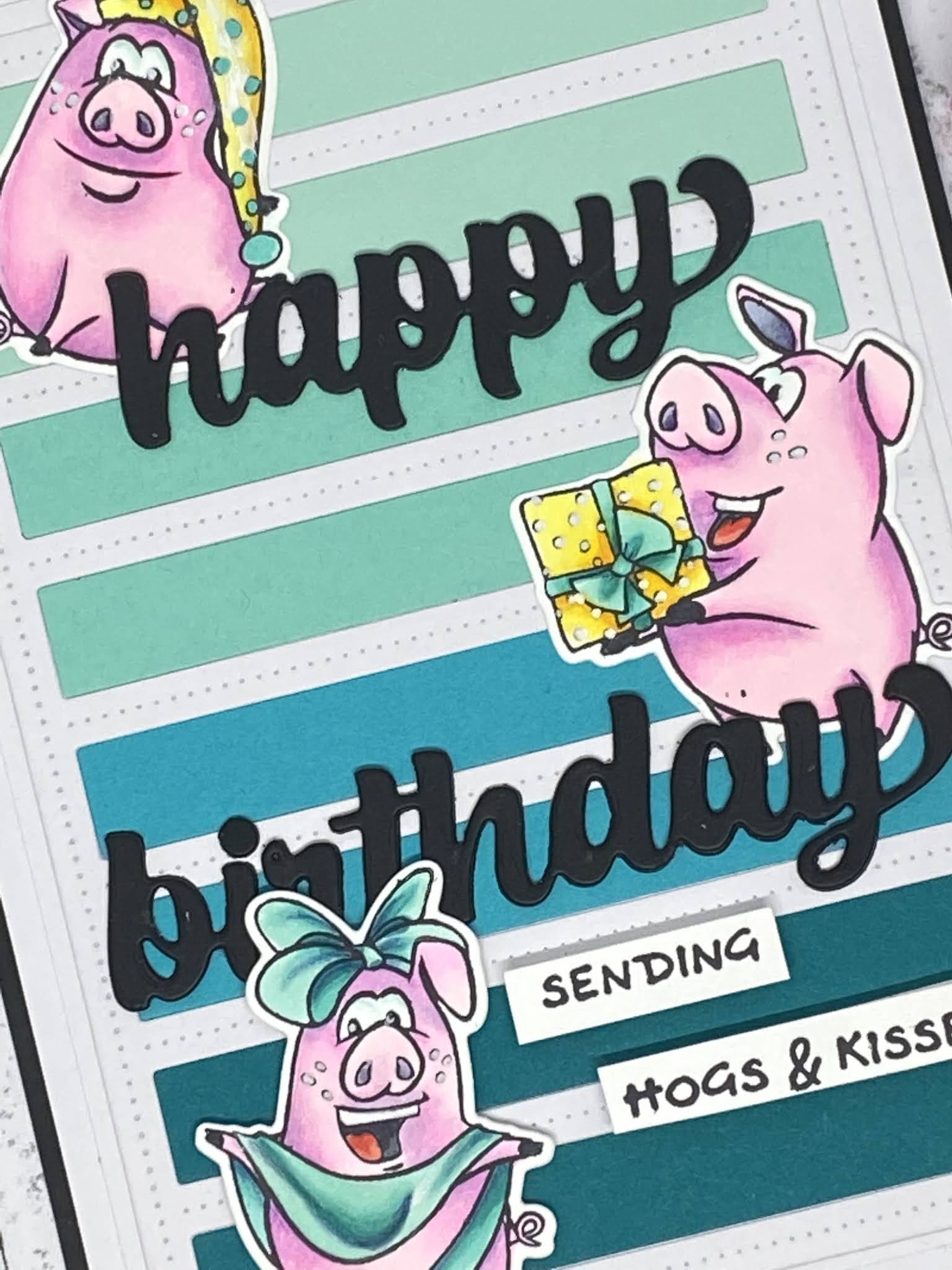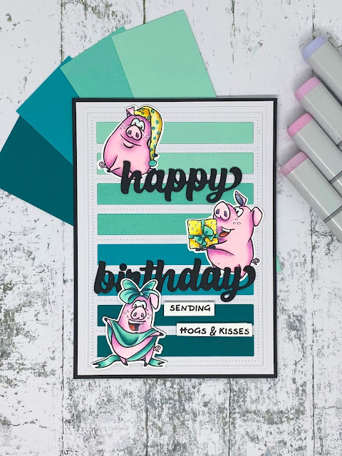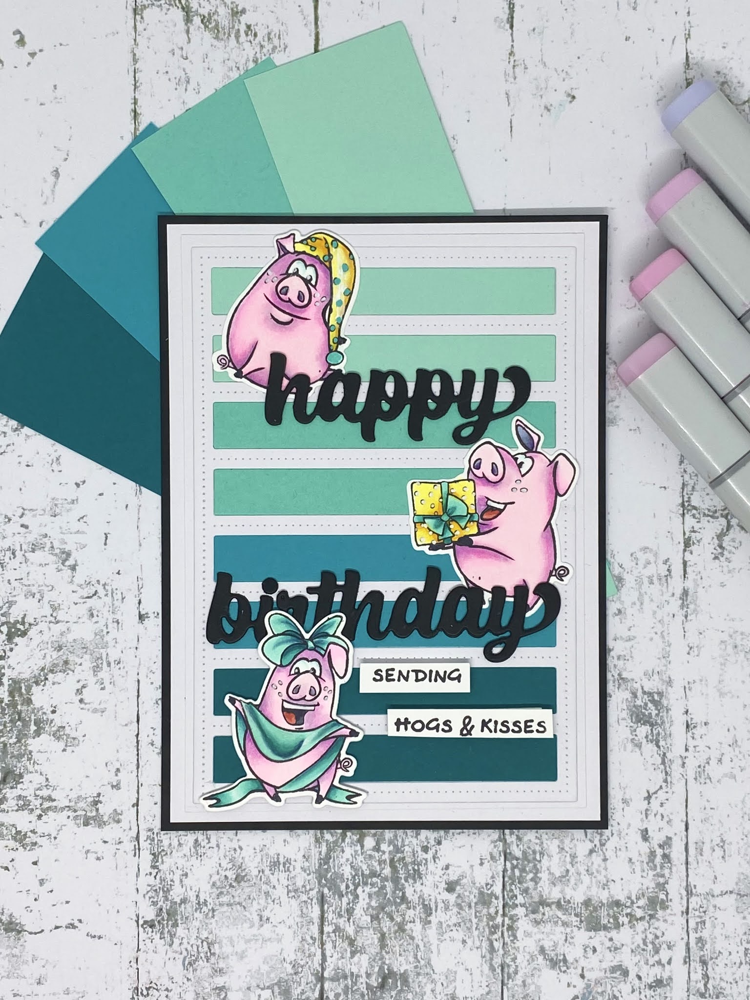 This card ended up so fun and colourful I love how happy this little piggies look!