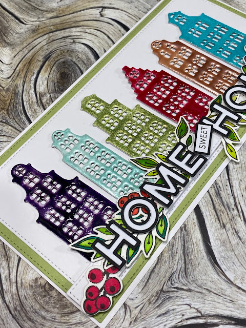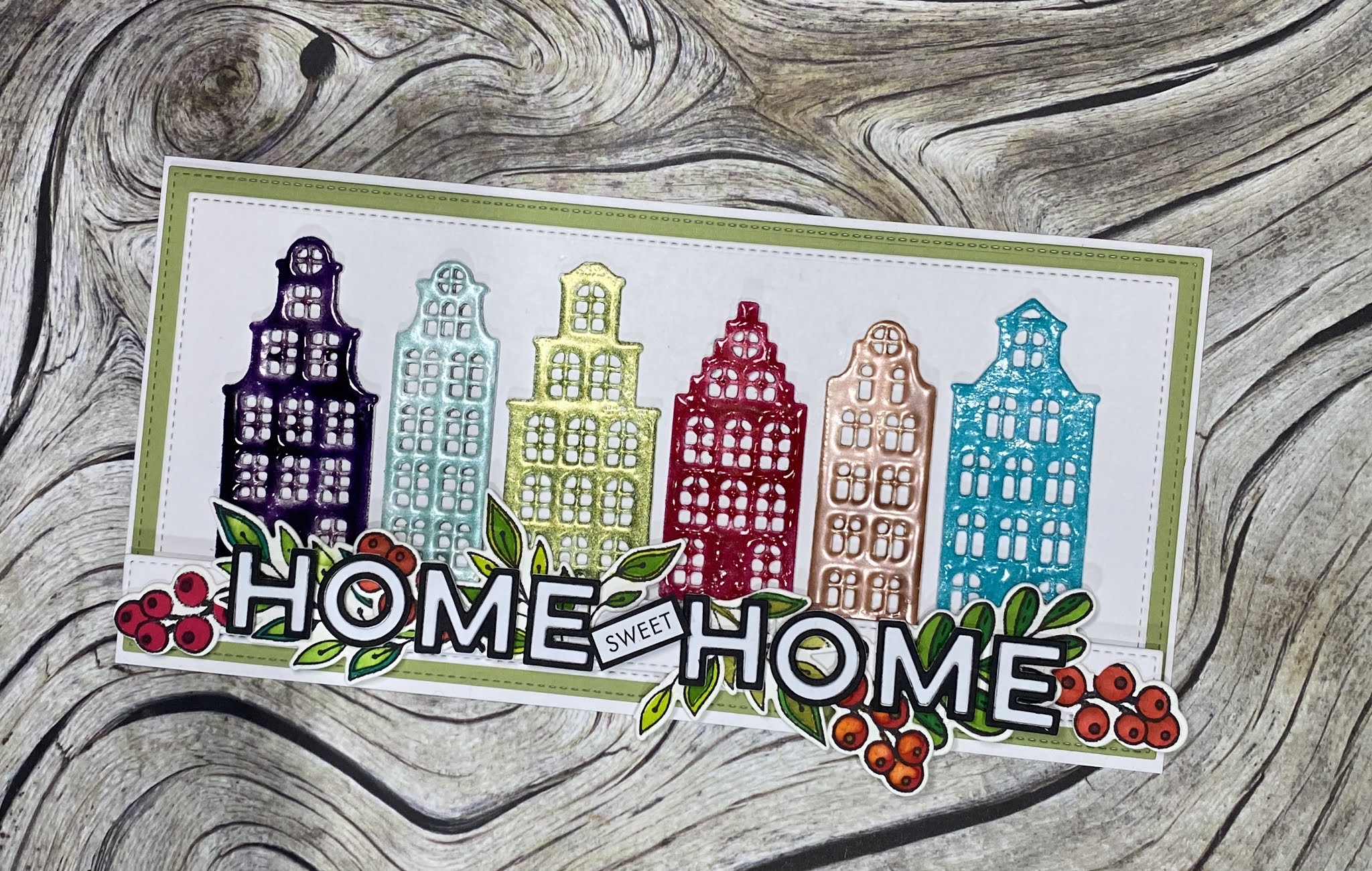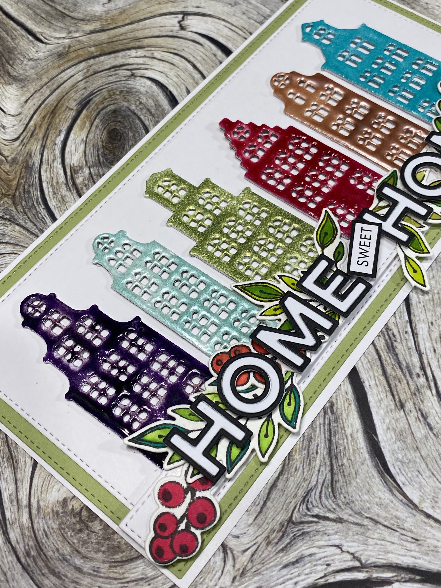 I have used an assortment of WOW embossing powders to heat emboss each building.