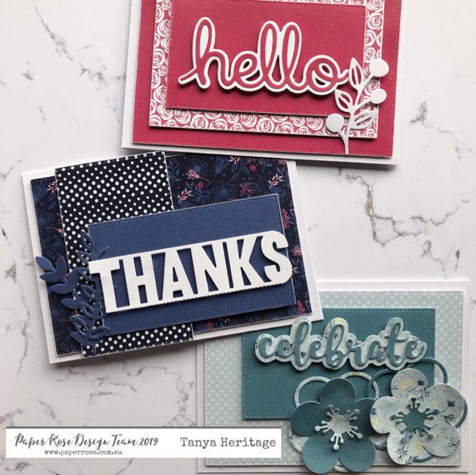 Today I'm sharing some layered cards that I have made using several of the Paper Rose dies and papers from one of their gorgeous new paper pack collections.