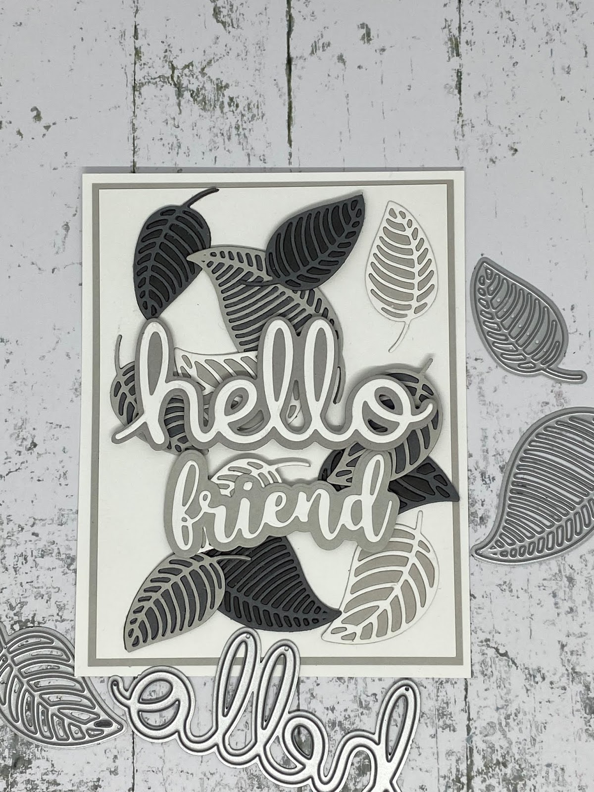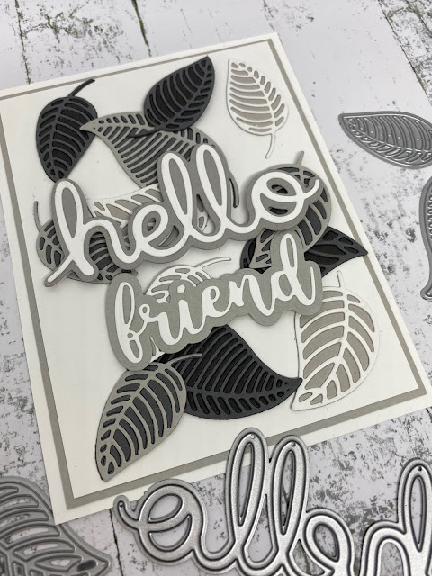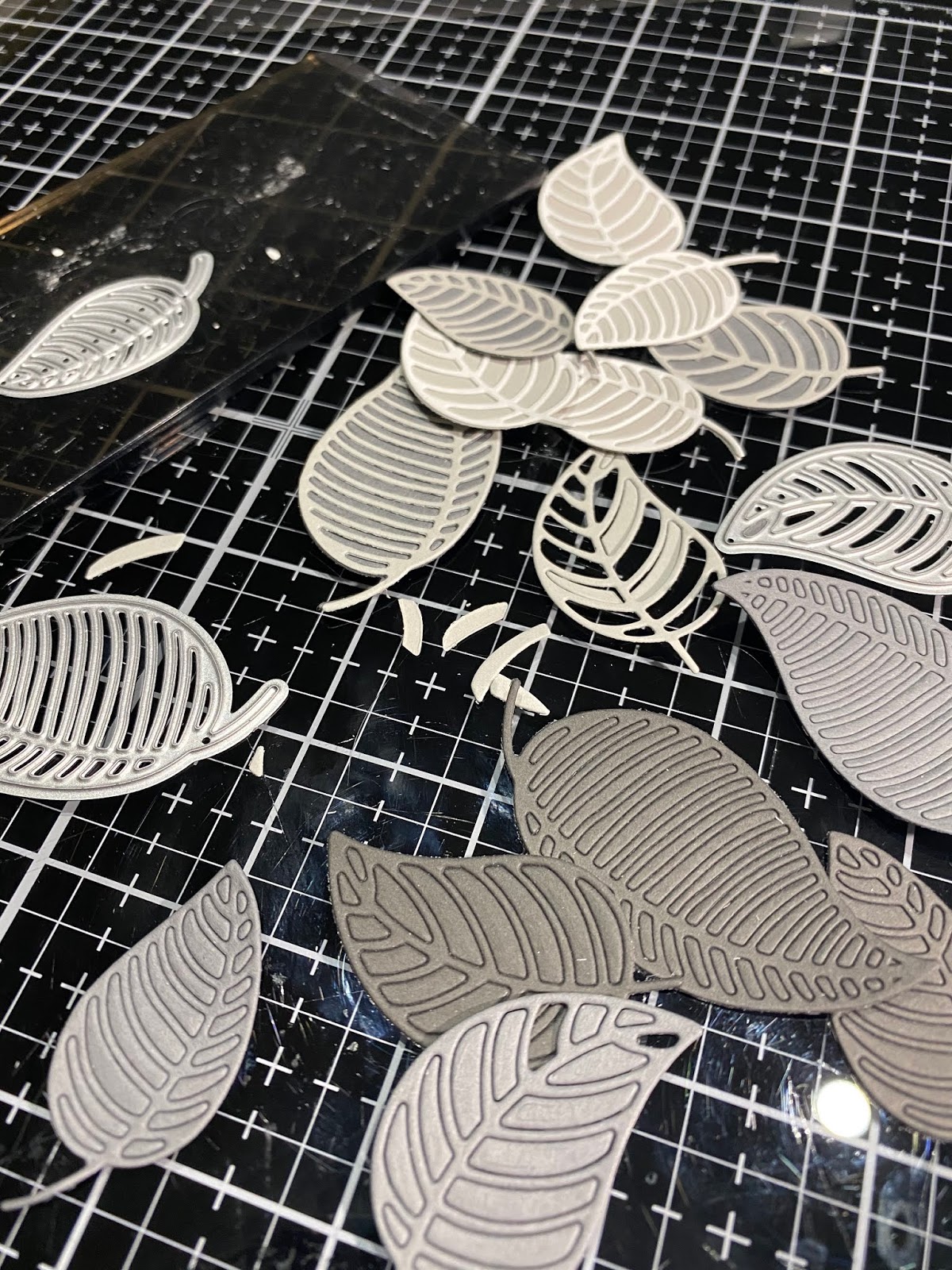 For example if I have cut a skeleton leaf in pale grey shade you will glue that onto another leaf the next shade darker.
