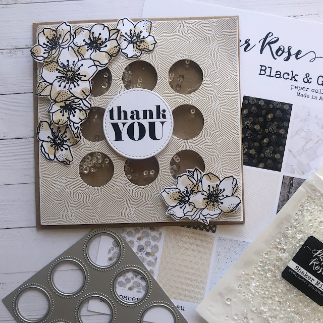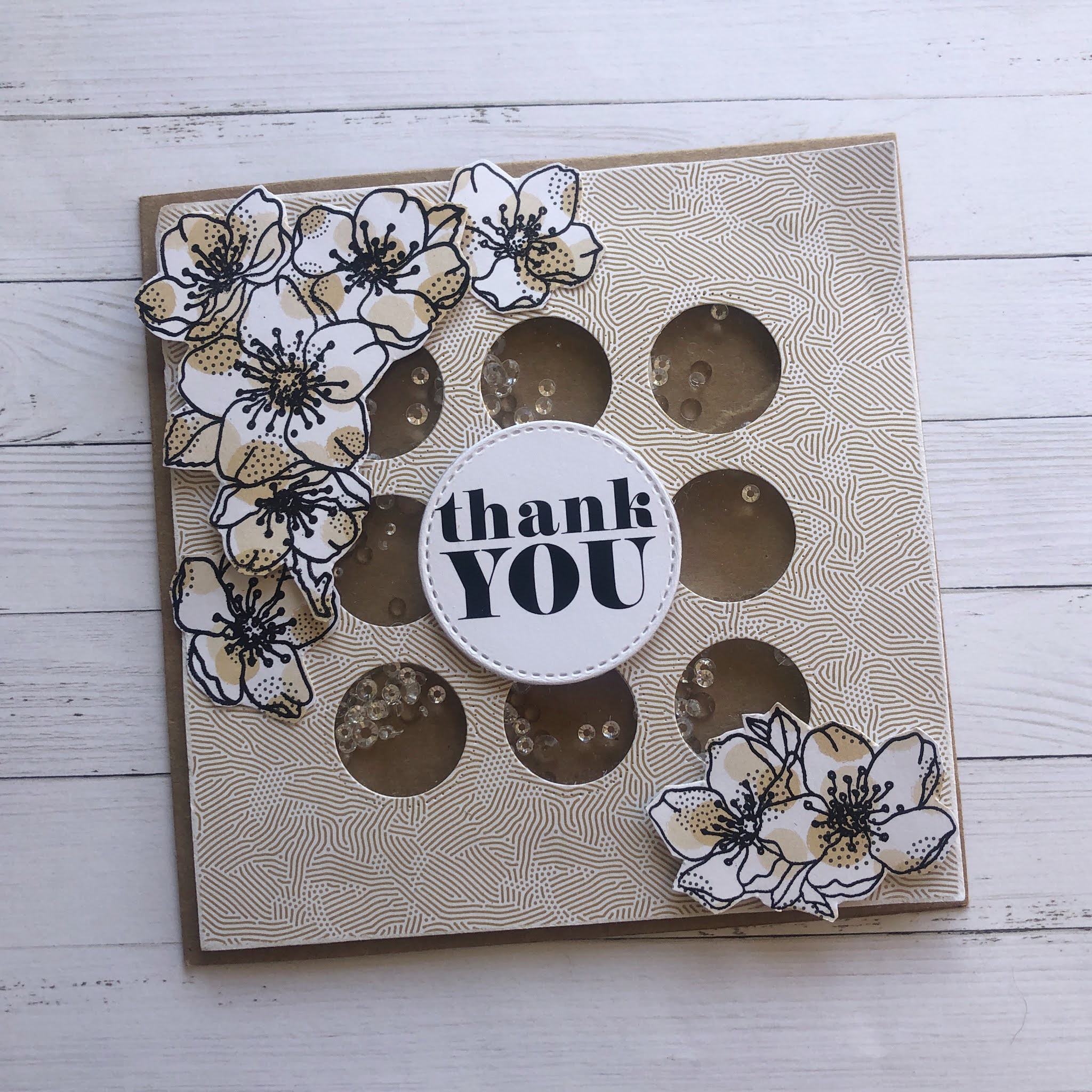 One sheet I have used with the 18596 Circle Grid Coverplate die to make the shaker background. Some foam tape and 19499 Clear Crystal mix and the shaker is complete.