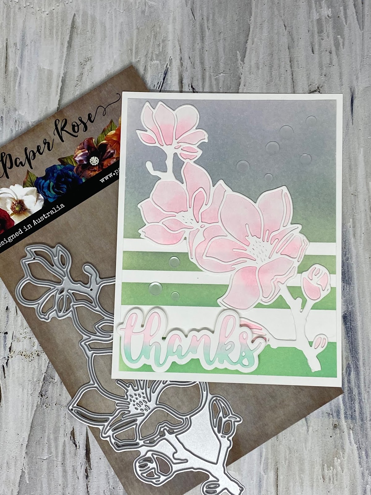 I am a huge fan of flower stamps and dies and I wanted to create a very simple card that is soft but with a featured background.