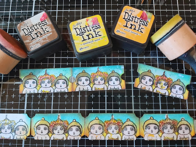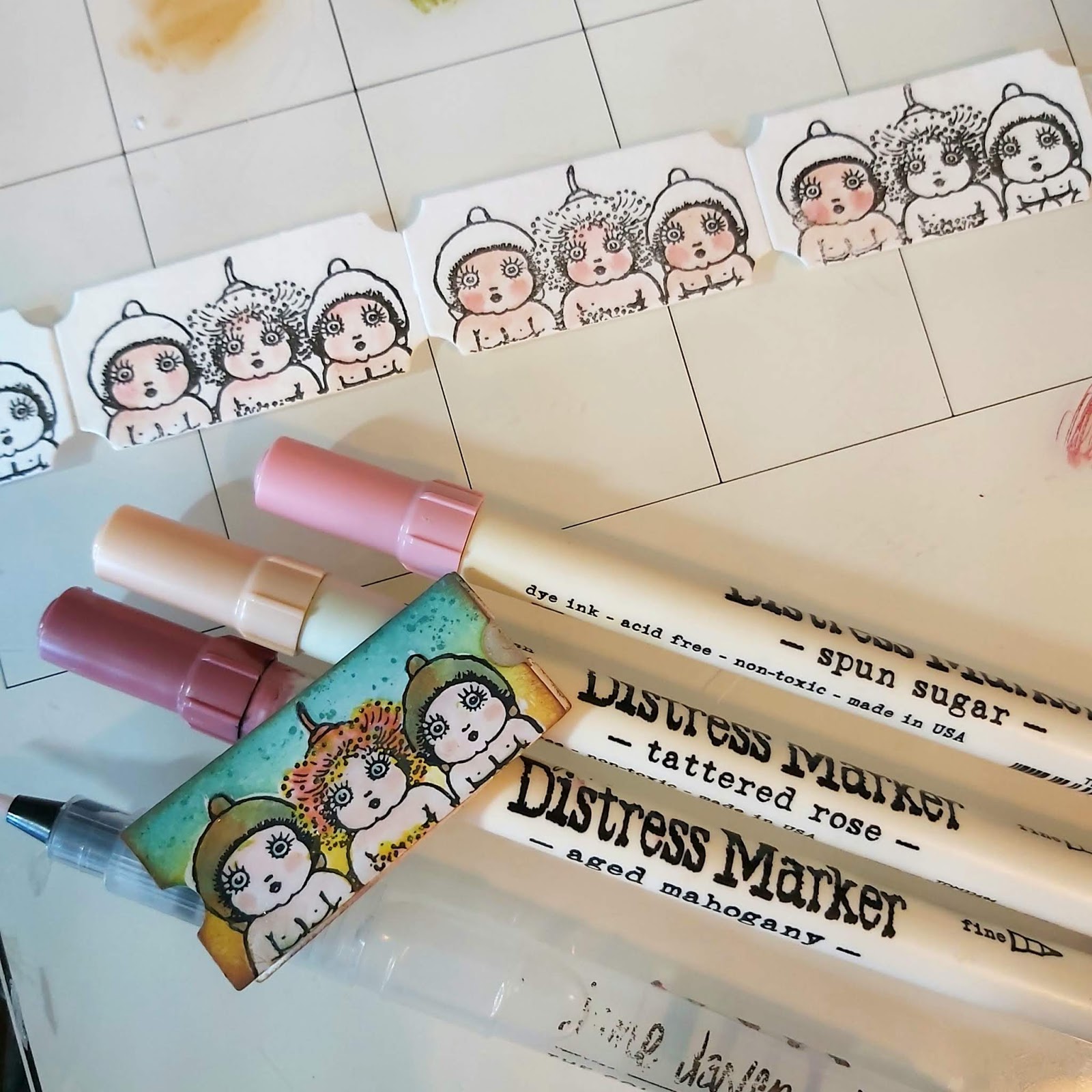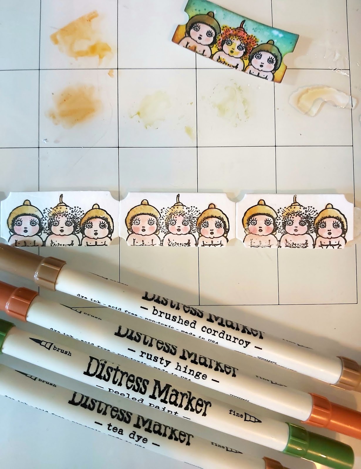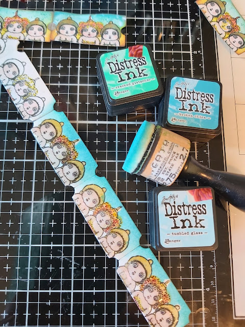 I used a Distress ink blending tool with foam & Distress Inks to blend over the entire ticket strip.