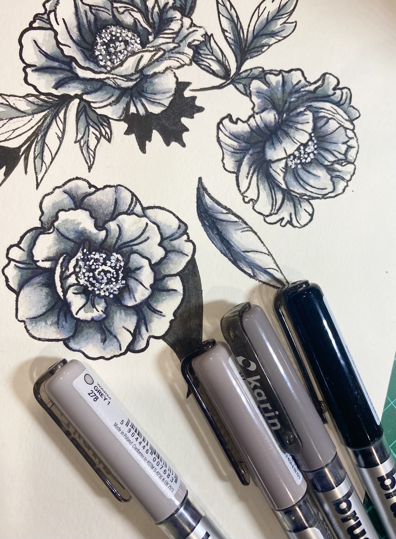 Karin watercolour brush pens in grey tones