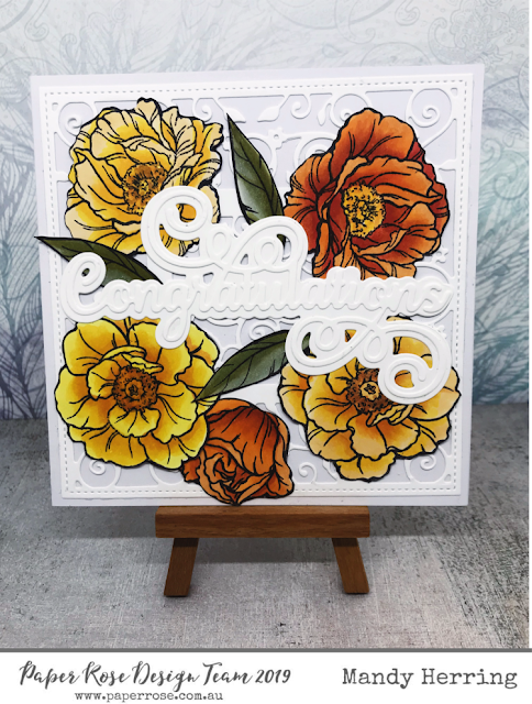 There is a matching die to go with the Peonies stamp set but in this case I didn't want the white outline so instead I have fussy cut all the flowers out.