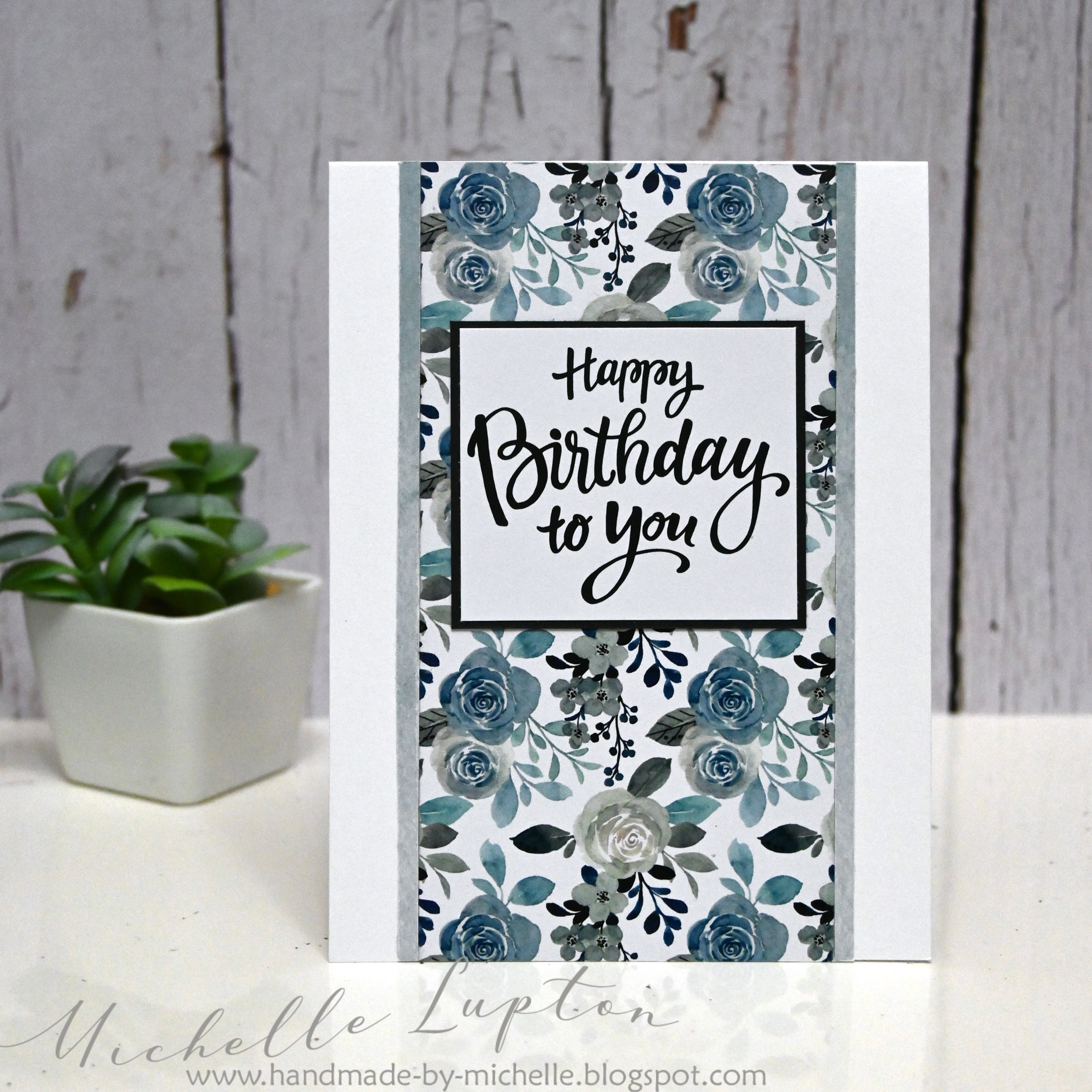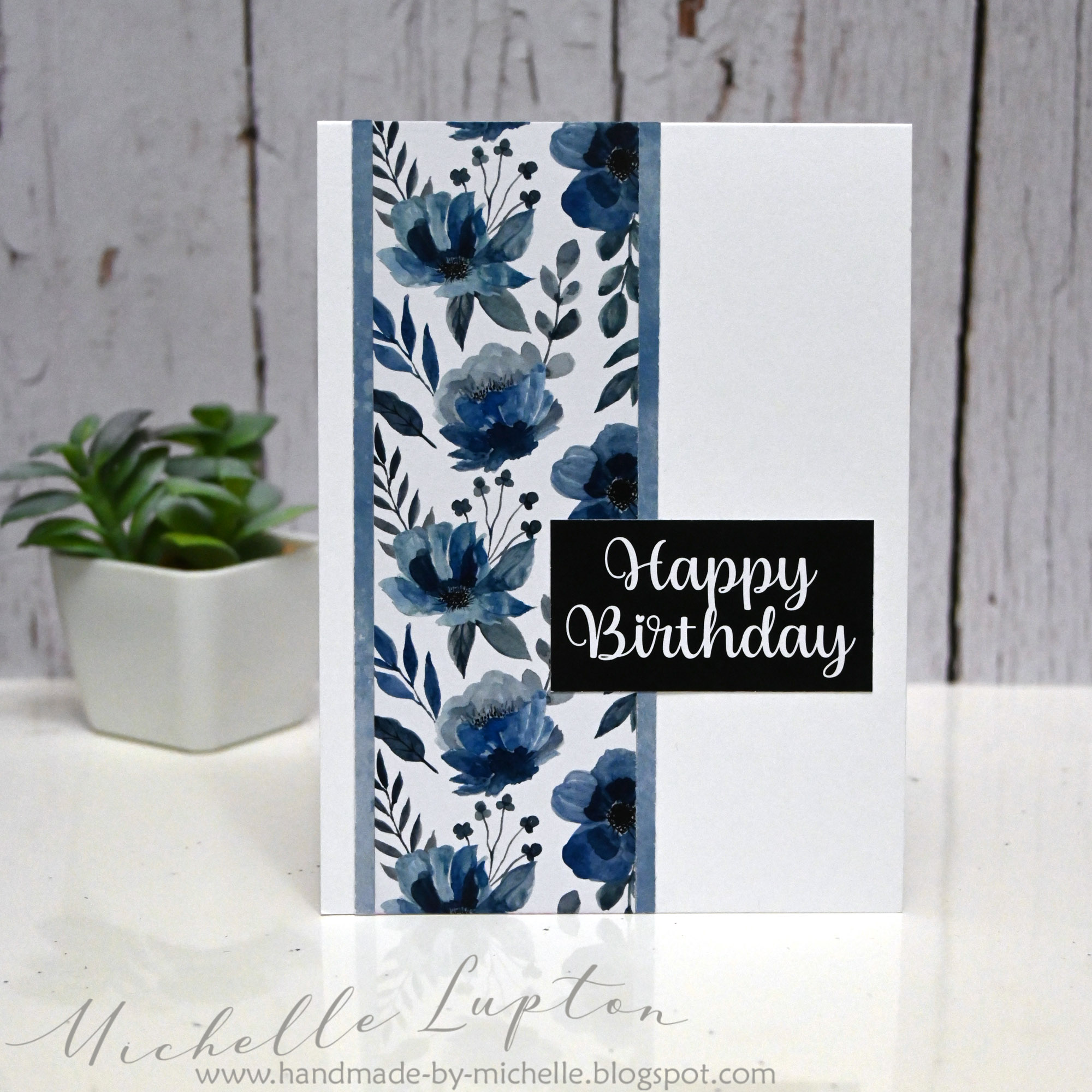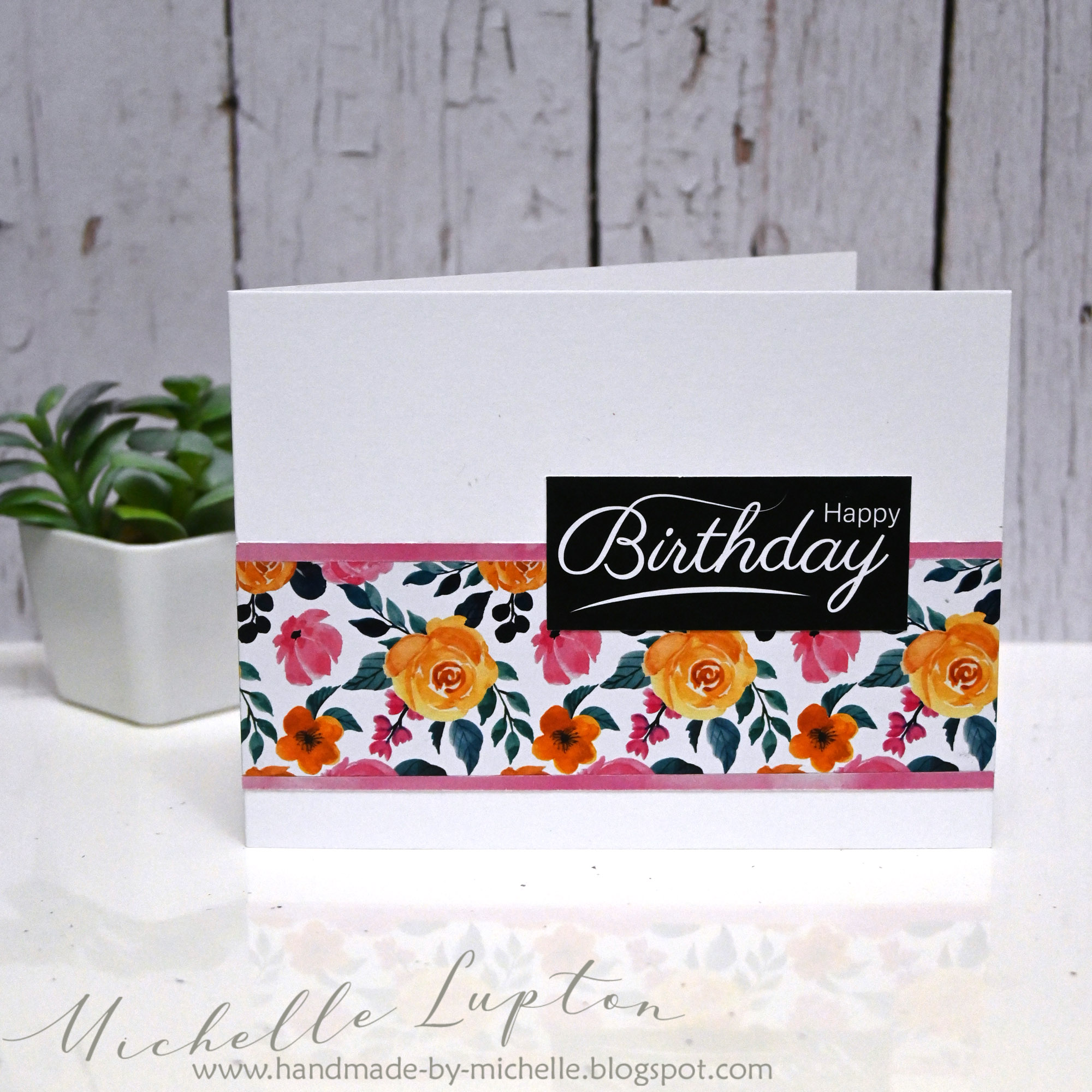 I cut each of the 6 patterns of paper in the Floral Bliss patterned paper pack into panels to put onto the front of at least 2 cards each. I varied the cuts to make a variety of layouts. I cut the sentiments from Big Sentiments 1.0 and layered them onto the card fronts, sometimes with a mat of black cardstock. On some cards, I cut thin strips of the patterned paper and used the reverse side to create a border on the edges of the floral panel. On the one card that is not floral, I used offcuts from the other cards to create a rainbow.