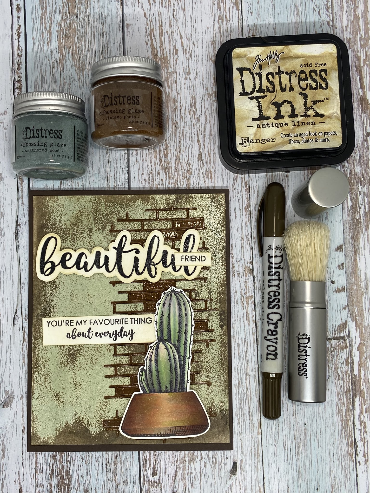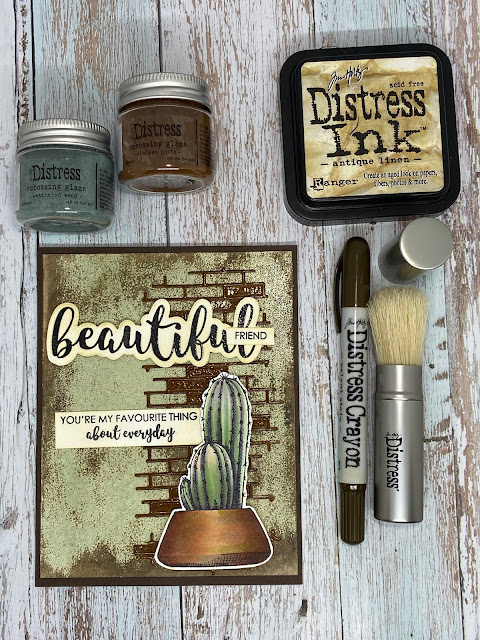 Distress Glaze. My sentiments are stamped onto card and sponged with Antique Linen Distress Ink.