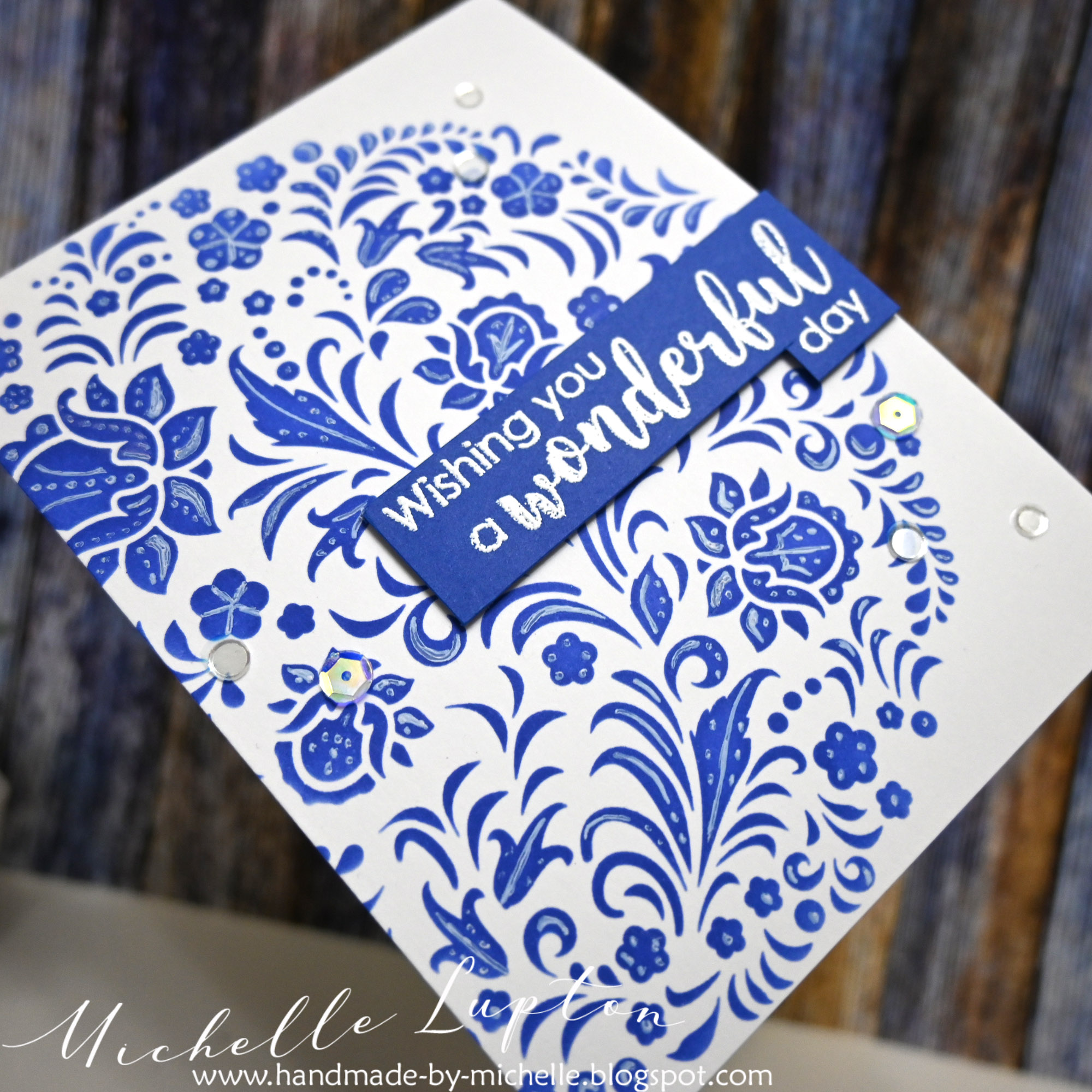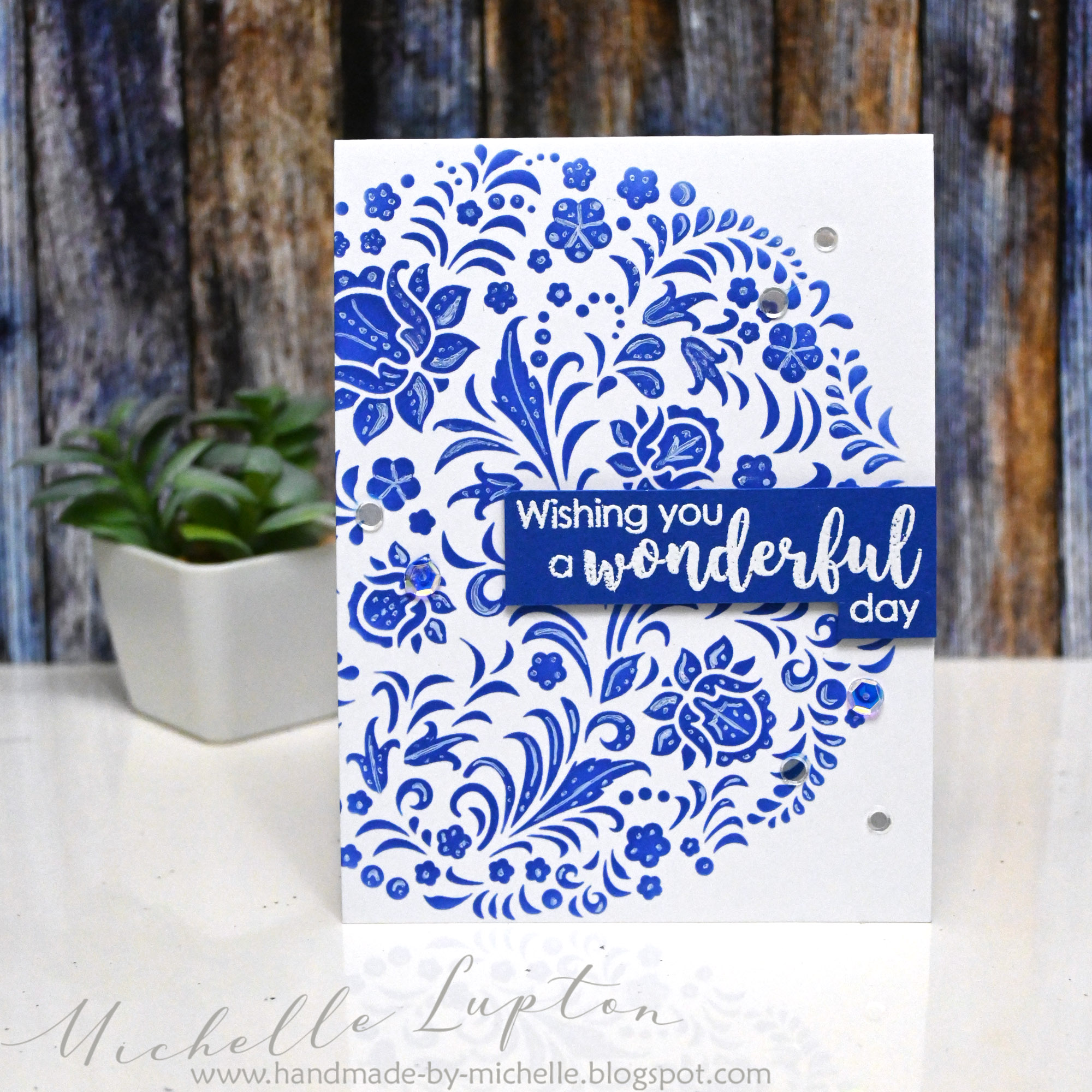 Today, I have a simple stenciled card using the Scandi Circle stencil from Paper Rose.