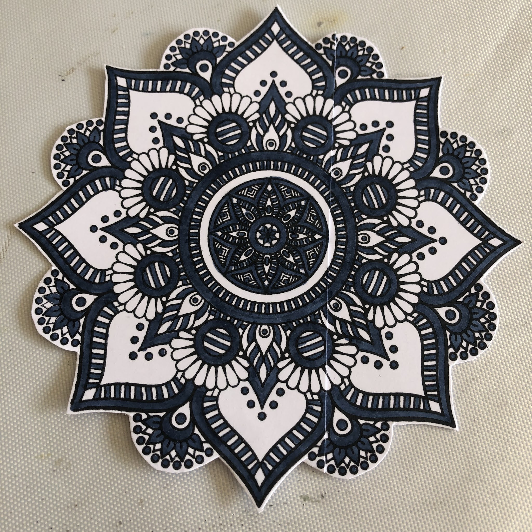 The last picture below shows the two mandala halves joined,
