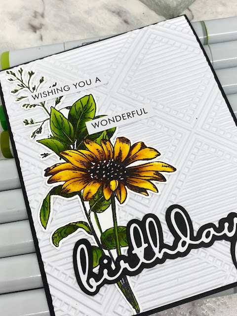 After colouring I have die cut the image out and then added a layered word