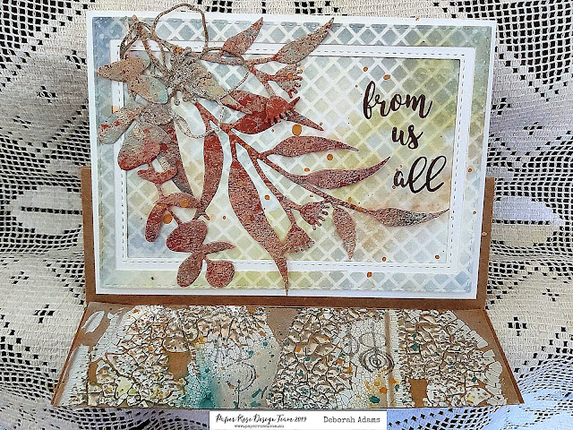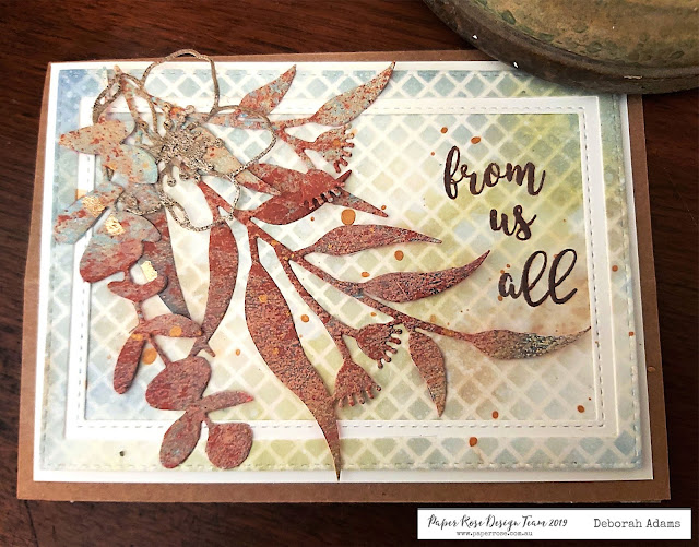 The Eucalyptus branch & Gum leaves die cuts are cut from pre-coloured papers,