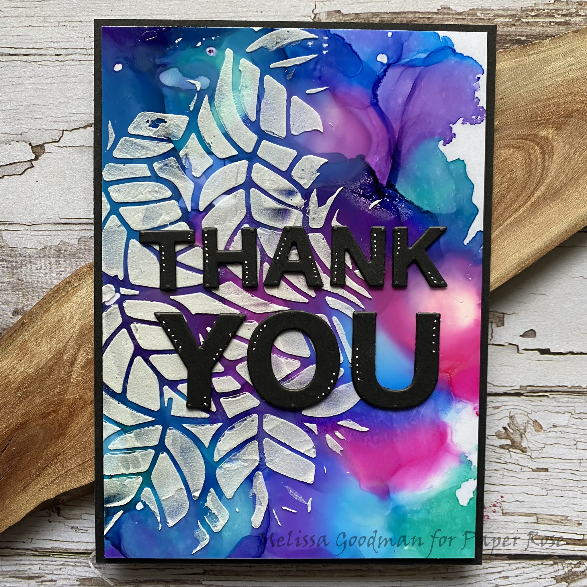 - Create background using Copic Various Ink (Alcohol Ink) onto Heat Resistant Acetate. Adhere this to a piece of white card