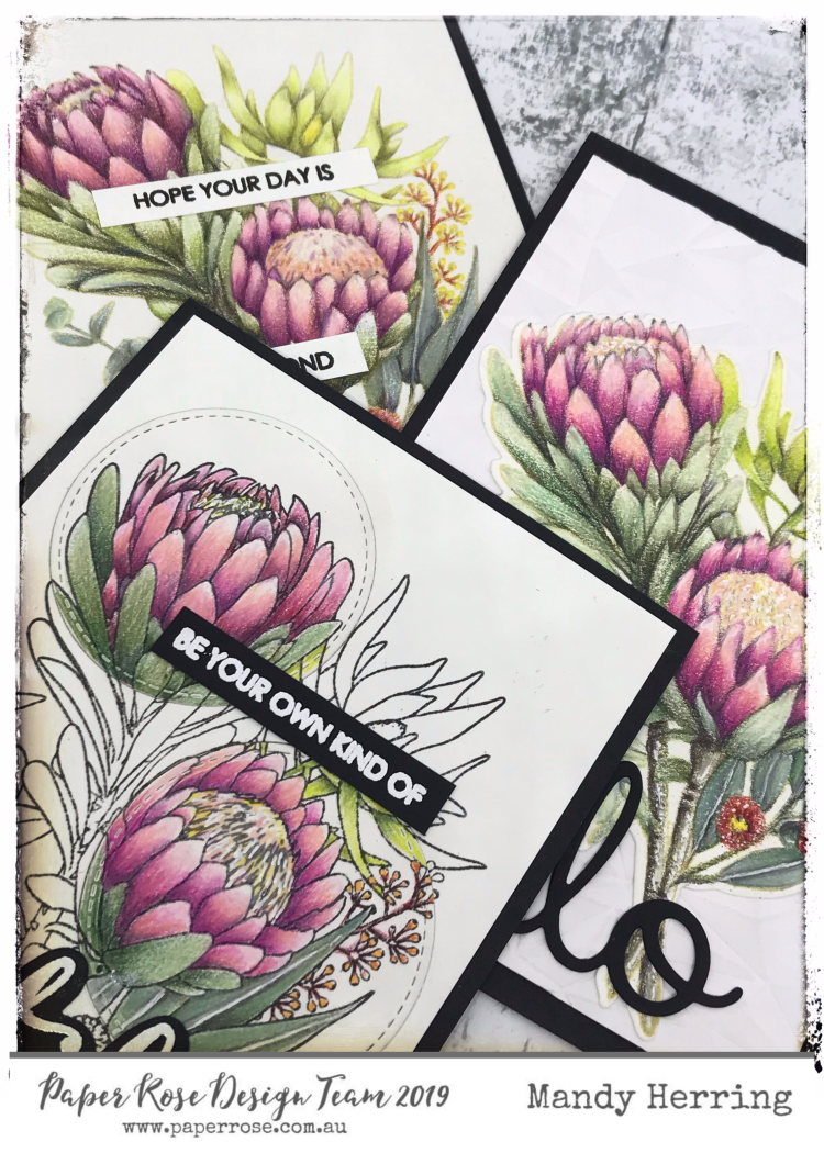 Todays cards I have created for you are for Paper Rose Studio. I really enjoyed the challenge of colouring in this gorgeous Stamp using Prismacolor pencils.