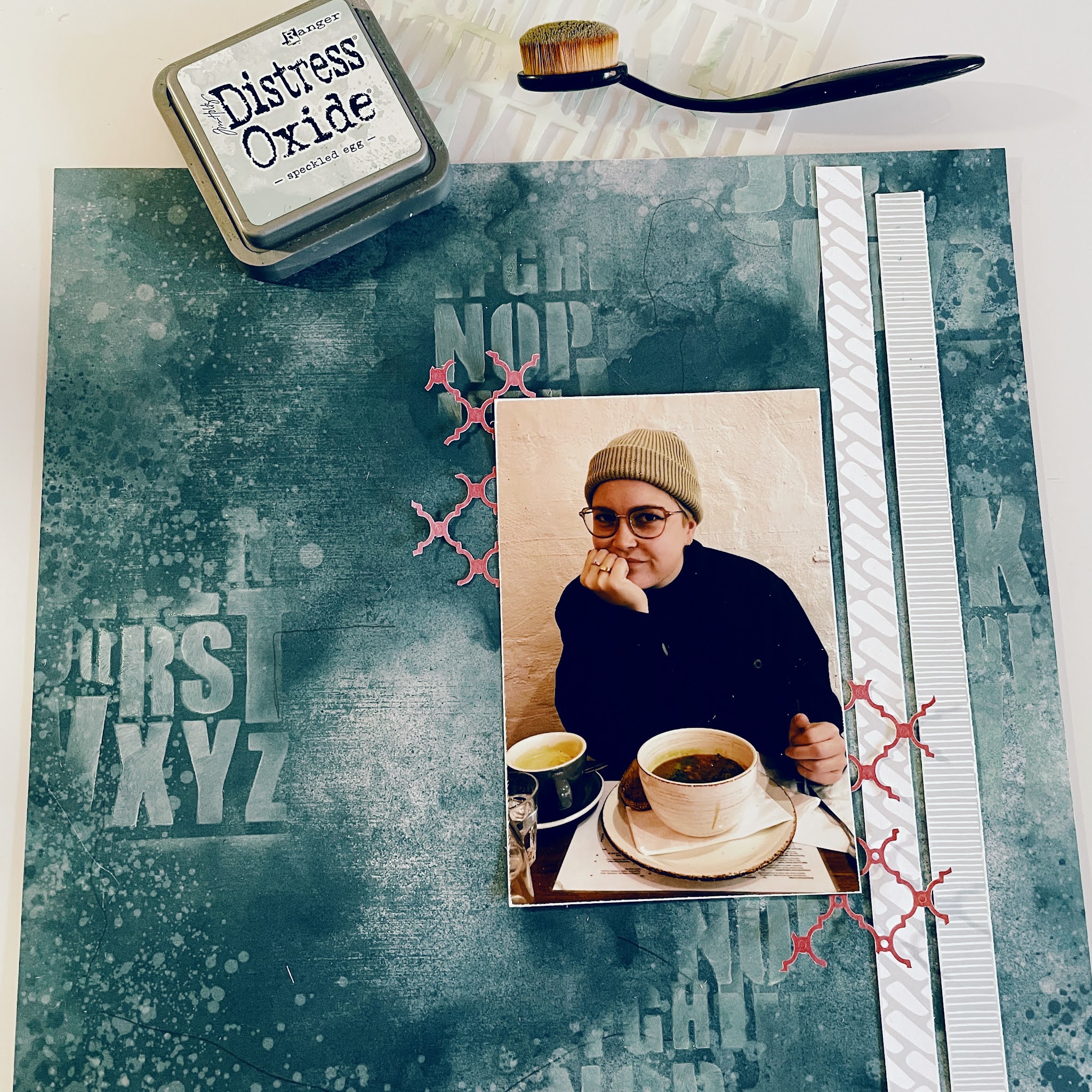 On this layout I stencilled onto the background paper with