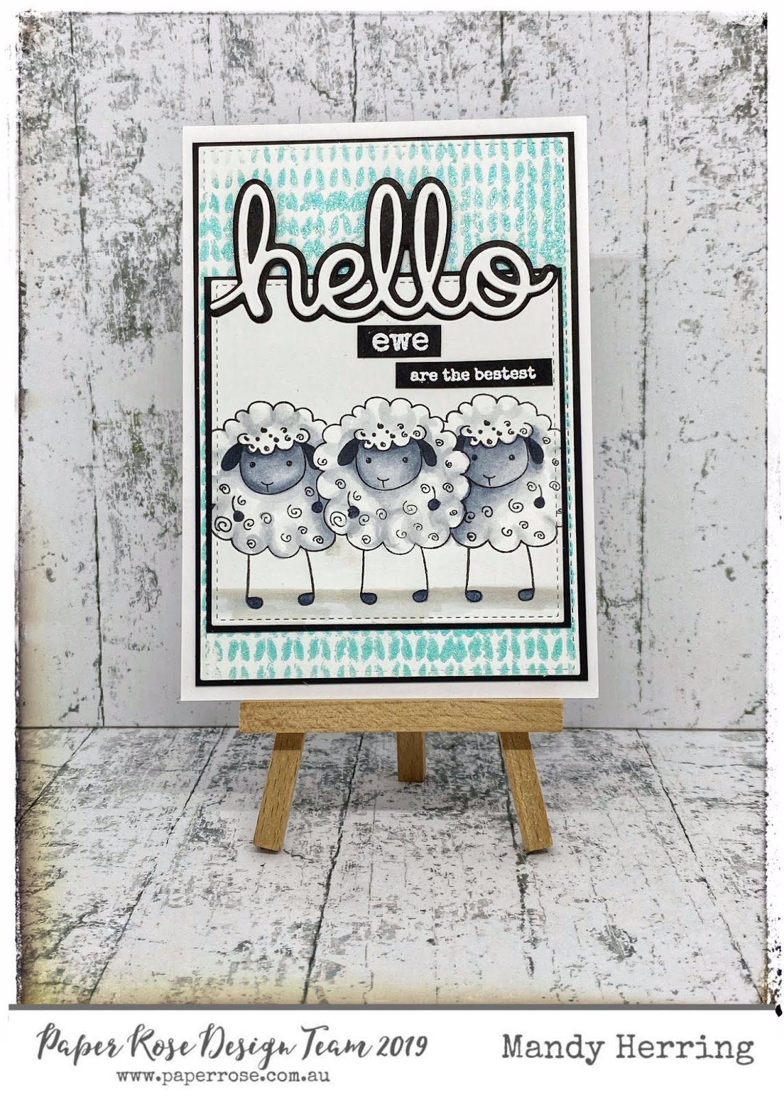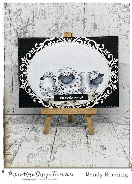 For this card I have simply cut out my stamped sheep using a stitched Oval Die. I have layered this onto black card and the Victorian Oval lattice Frame Die.