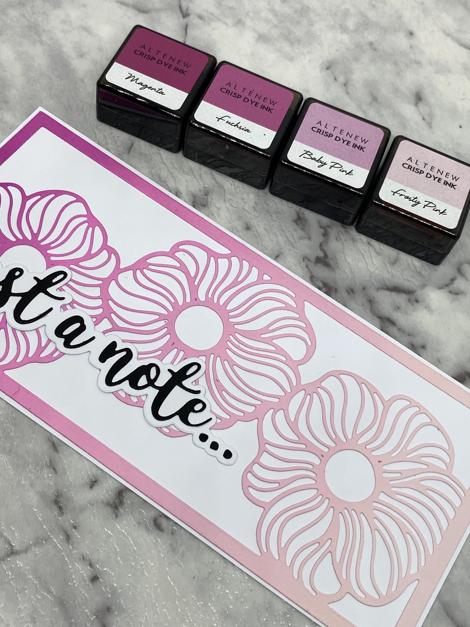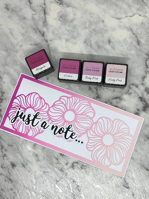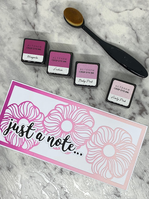 I have then used four pink coloured inks to create a blended background from light to dark.
