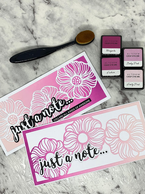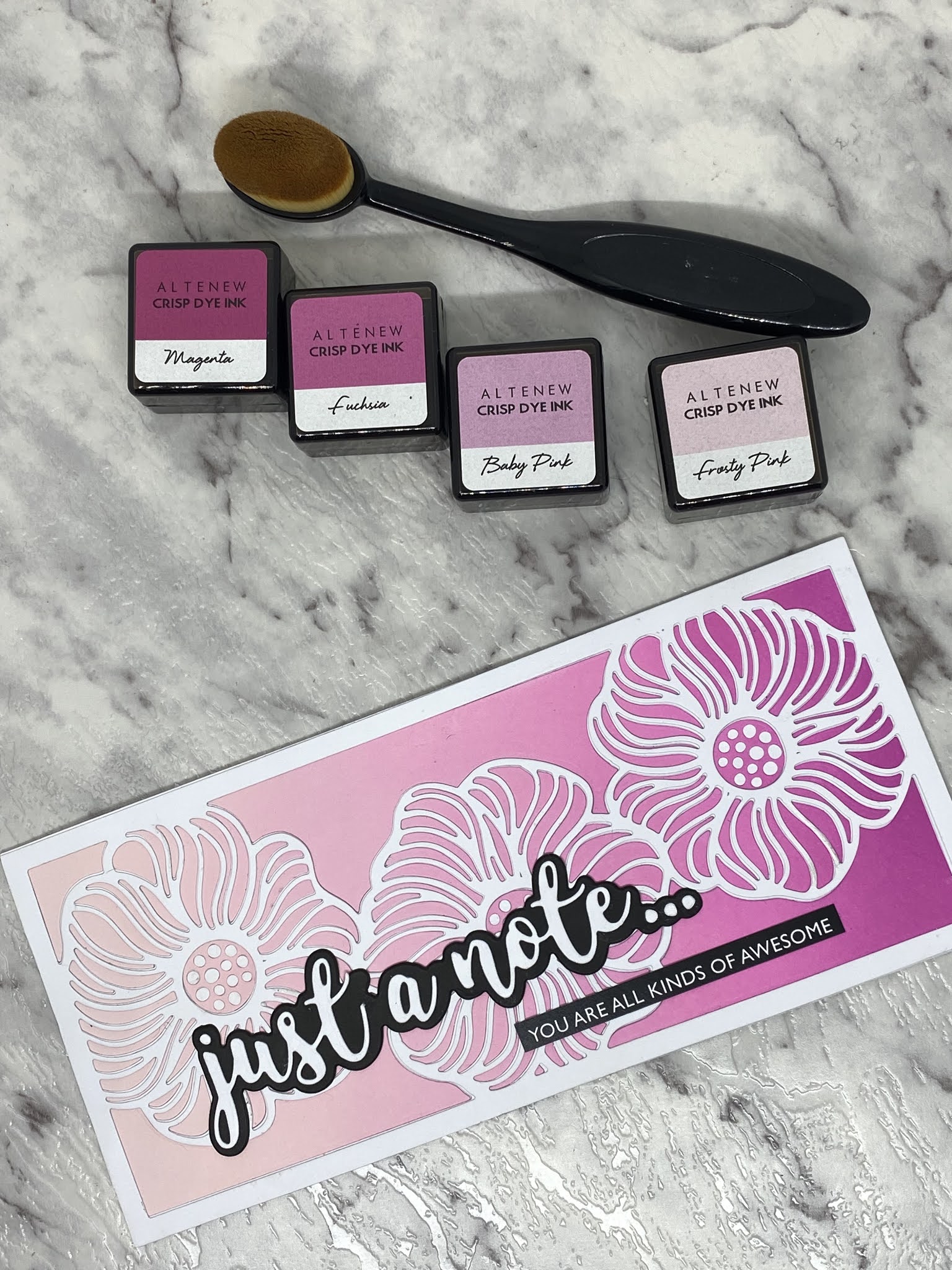 I used a blending brush to apply the colour to my base card as it helps to create a smooth blend without lines. It does take some time to get the colour down but totally worth the effort.